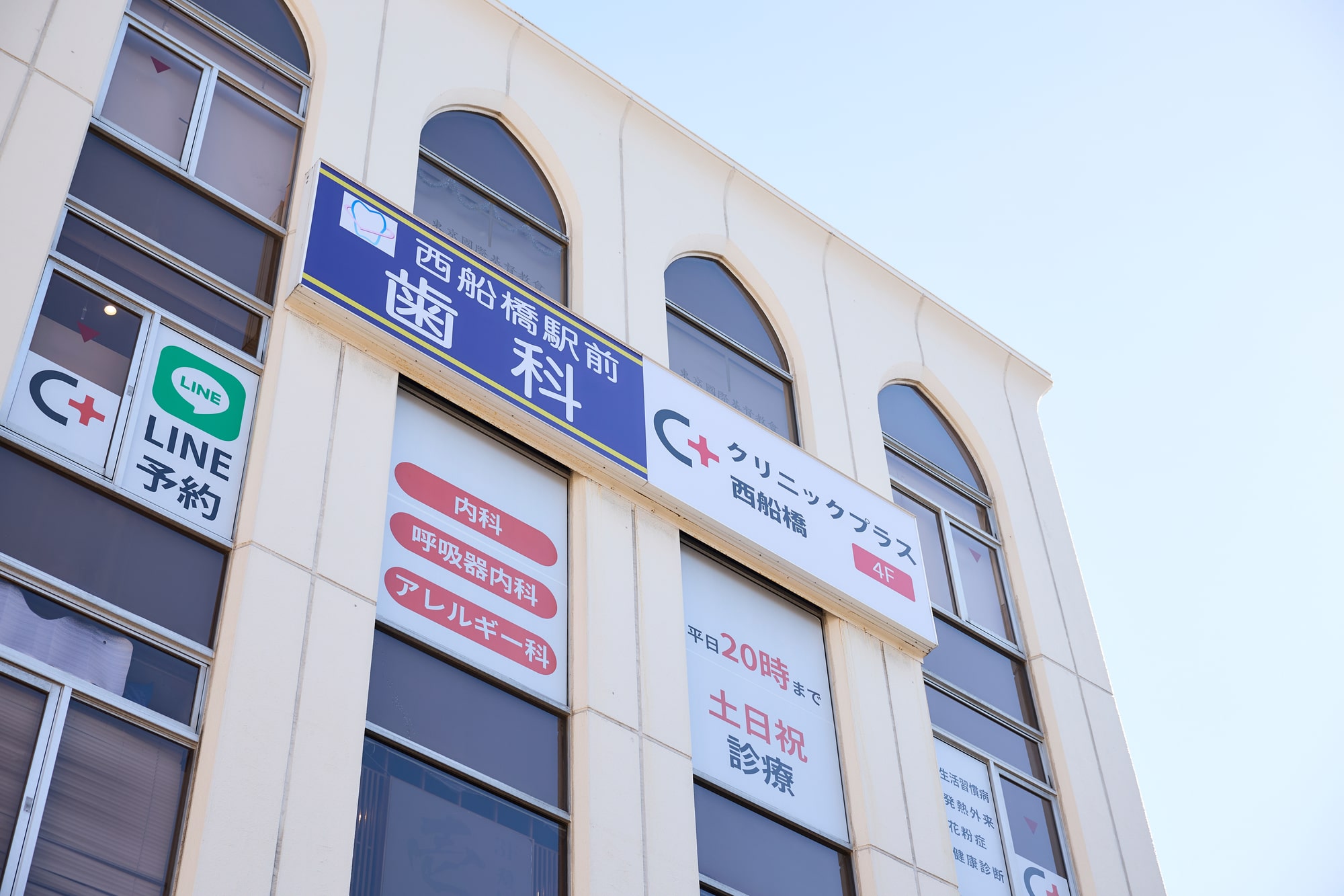クリニックプラス西船橋はJR総武本線・武蔵野線・京葉線・東京メトロ東西線・東葉高速鉄道西船橋駅北口から徒歩1分のアクセスで、平日9時~20時まで、土日祝日9時~17時半までご利用いただける、夜間休日診療に対応したクリニックです。